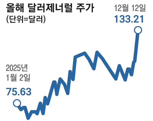 올해 미국 증시 상승을 이끈 엔비디아의 주가 상승률을 두 배 이상 웃도는 성과다.특히 블랙프라이데이를 기점으로 쇼핑시즌이 본격화하는 연말로 갈수록 상승세가 뚜렷해지는 양상이다.