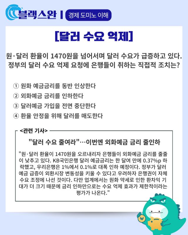 ▶기사 바로가기: “달러 수요 줄여라”…이번엔 외화예금 금리 줄인하