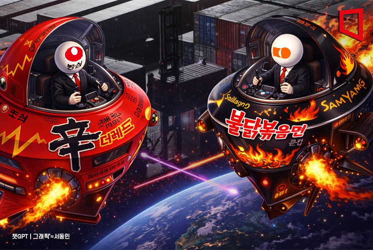 경쟁의 축은 점유율에서 글로벌 생산능력으로 이동라면 시장의 경쟁 무대가 바뀌었다.농심이 '신라면'을 필두로 한 브랜드 파워와 유통 지배력을 지키며 왕좌를 차지한 가운데 '불닭볶음면'을 앞세운 삼양식품이 실적을 가파르게 늘리면서다.라면 전쟁의 무대가 글로벌로 확장하면서 양사의 경쟁은 '누가 더 많이 파느냐'가 아니라 글로벌 수요를 얼마나 빠르고 안정적으로 공급할 수 있느냐로 이동하고 있다.