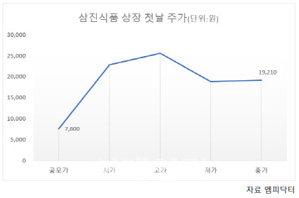 기업가치 의구심에 "내년까지 해외매출 100% 성장"[이데일리 박정수 기자] 어묵 기업 삼진식품(0013V0)이 코스닥 상장 첫날‘따블’(공모가 대비 2배)에 성공했다.
