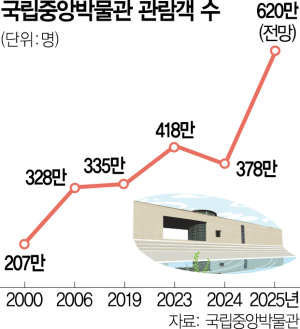 이런 전례와 비교하면 600만 명을 넘긴 올해는 유난한 셈이다.연말까지 예상치는 총 620만 명이다.대체로 우리 문화유산에 대한 젊은 세대들의 관심과 함께 넷플릭스 애니메이션‘케이팝 데몬 헌터스(케데헌)’인기가 겹치면서 올해 관람객이 폭발적으로 늘었다.즉 이런 추세가 내년 이후에도 유지될 수 있느냐가 최근 국립박물관의 최대 이슈인 재유료화의 운명을 좌우할 것으로 보인다.