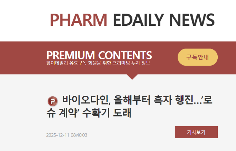 이 기사는 2025년12월12일 08시10분에 팜이데일리 프리미엄 콘텐츠로 선공개 되었습니다.