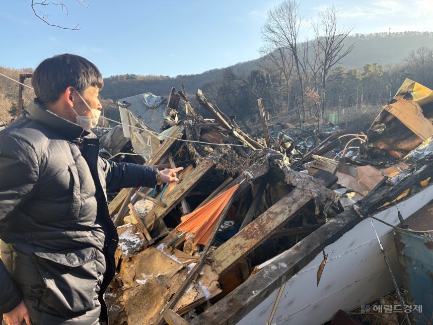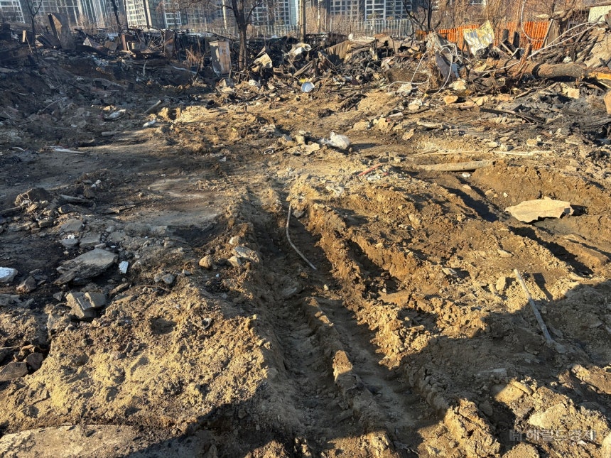 [헤럴드경제=정주원 기자] 지난 20일 찾은 서울 강남구 개포동 구룡마을의 4·5·6지구 일대는 잿더미로 변해 있었다.집이 서 있던 흔적 조차 구분하기 어려울 지경이었다.검게 탄 기둥이 쓰러진 채 땅에 박혀 있었고,녹아내린 철제 프레임과 뒤틀린 가전제품이 차가운 바람을 맞을 때마다 덜컹거리는 소리가 들렸다.