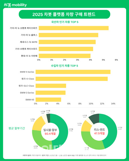 11일 모빌리티 컨시어지 플랫폼 차봇모빌리티가 2025년 한 해 동안 접수된 실제 차량 구매 견적 데이터를 분석한‘2025 차량 구매 트렌드 리포트’를 정리했다.