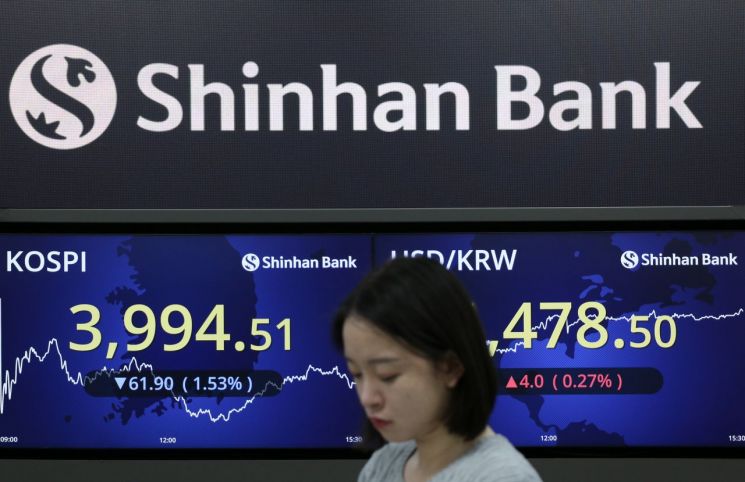 이날 코스피는 전 거래일 대비 1.53% 내린 3994.51로 거래를 마쳤다.전장보다 1.65% 빠진 3989.60으로 출발한 지수는 장중 4000선 부근에서 횡보하는 양상을 보였다.