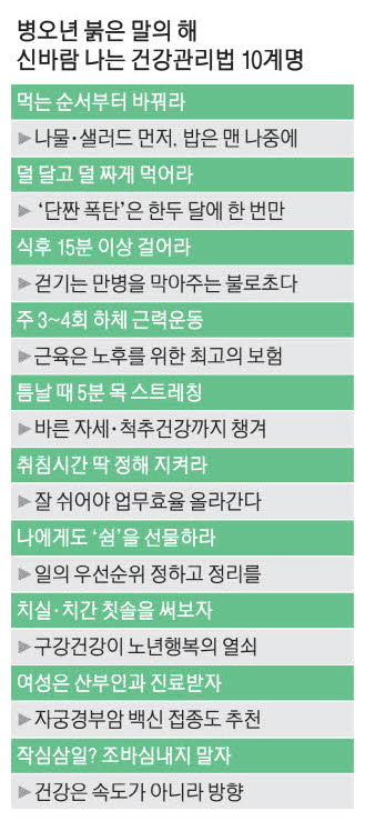 매년 이맘때면 굳게 다짐하지만,매번 작심삼일이 되고 마는 계획이다.헬스장을 등록한다고 알아보고,달리기를 시작한다고 러닝화를 사고,사회관계망서비스(SNS)에서 본 새로운 영양제도 구매해보지만,결국 평소와 다르지 않은 하루로 돌아가고 만다.우리 몸 상태를 좌우하는 것은 거창한 결심이 아니라 매일 반복되는 작은 선택이다.병오년 새해를 맞아 '당연하지만 놓치기 쉬운 기본'을 다시 짚기 위해 명의 11인에게 건강 관리법을 물었다.
