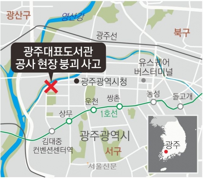 11일 광주시와 소방 당국에 따르면 이날 오후 1시 58분 쯤 광주 서구 치평동의 광주대표도서관 공사 현장에서 도서관 2층 옥상이 갑자기 붕괴하며 지하층까지 연쇄적으로 무너졌다.