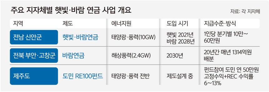 앞서 신안군은‘신재생에너지 개발이익 주민공유제’를 2021년 4월부터 시행했다.햇빛과 바람을 이용해 2030년까지 10GW 규모의 태양광발전소와 풍력발전소를 설치해 그 이익을 주민들에게 나눠 주는 제도다.현재 6개 섬 주민 1만8997명에게 분기당 10만~60만원을 지급하고 있으며,2030년까지 전 군민에게 월 50만원의 기본소득을 지급하는 게 목표다.