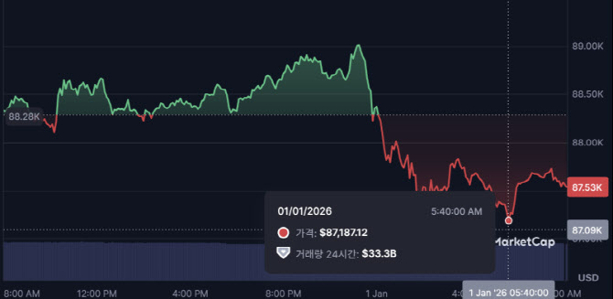 1일 코인마켓캡에 따르면 이날 오전 8시 비트코인 가격은 24시간 전에 비해 0.87% 내린 8만7584만 달러 수준에서 거래되고 있다.시가총액 2위인 이더리움 가격은 0.11% 오른 2971달러 선에서 거래되고 있다.USDT와 USDC 등 스테이블코인은 각각 1달러 안팎에서 거래되며 달러 페그(peg)를 유지하고 있다.XRP(-1.74%),솔라나(+0.33%) 등 알트코인은 큰 반등세를 보이지 않고 있다.