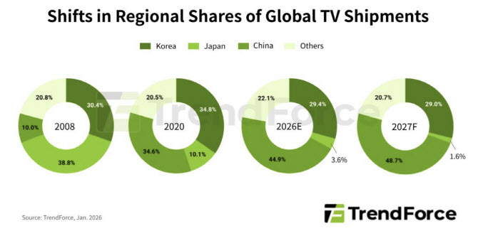 2027년 중국 TV 브랜드 점유율 50% 육박할 것[이데일리 김소연 기자] 소니와 TCL의 합작회사가 내년 4월 출범하는 가운데 두 회사의 TV 시장 점유율이 20%에 육박할 수 있다는 전망이 나왔다.삼성전자의 TV 시장 선두자리를 위협할 수도 있다는 분석이다.
