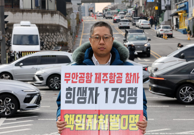 지난해 12월 29일 전남 무안공항에서 발생한 제주항공 참사로 부모님을 잃은 고재승(43) 씨는 이런 문구를 적은 피켓을 들고 용산 대통령실 앞으로 출근한다.지난 여름 희생자 179명을 추모하기 위해 시작한 1인 시위는 어느덧 179일을 앞두고 있다.
