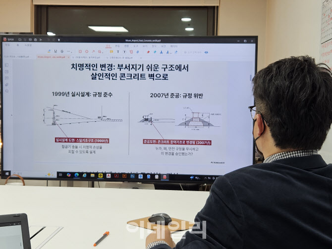 이씨는 “사조위가 국토부 소속이다 보니 (국토부에) 피해가 가는 말을 못하는 게 아닌가 하는 생각이 들었다”면서 “그때부터‘이건 좀 아닌데’하는 생각이 들면서 관련 규정을 찾아보기 시작했다”고 말했다.이씨는 경찰 현장 감식에도 따라갔다.현장이 없어질지도 모른다는 불안감과 영영 진실을 모를 수 있다는 조급함에서였다.그는 로컬라이저의 너비(44m)와 폭(3.4m)을 직접 측량했다.