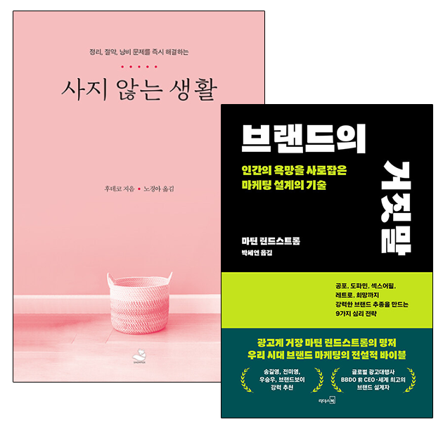 쇼핑을 하지 않고 살 수 있을까?린드스트롬은 유명 마케터이면서도 자칭‘브랜드 해독(디톡스)’에 도전했다.이미 가지고 있는 건 쓰지만 일 년 동안 브랜드 제품을 사지 않으려는 시도였다.아침에 특정 회사 시리얼 대신 사과를 먹고 감기에 걸리면 비타민이 아닌 오렌지를 섭취하며 6개월 가까이 버텼으나,출장지에서 항공 수하물이 분실돼 입을 옷을 급하게 사면서 결국 실패했다.티셔츠를 산 그 자체가 실패였다기보다는 그때부터 “(소비의) 댐이 무너졌다”는 것이 그의 설명이다.한 번 무너지니 그동안 억눌러왔던 소비 욕구가 와르르 터져나왔다.그는 “그 어려움을 누구보다 잘 알고 있는 내가 실패했다는 사실은 기업들이 얼마나 간교하게 사람들의 욕망을 자극하고 있는지 말해준다”고 했다.