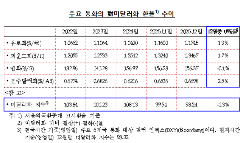 [주요 통화의 대미달러화 환율 추이.(사진=한국은행)]