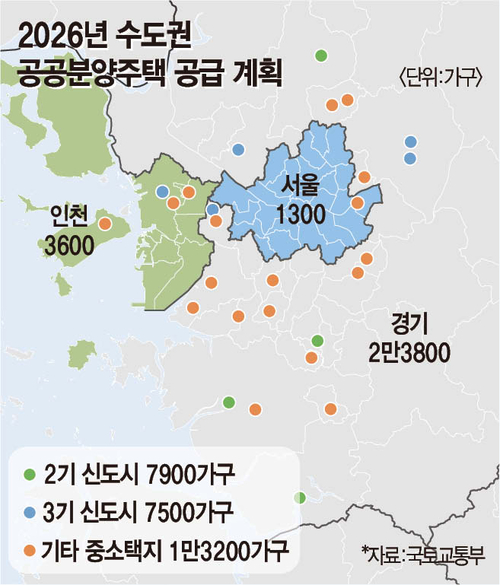 국토교통부는 한국토지주택공사(LH),서울주택도시개발공사(SH),경기주택도시공사(GH),인천도시공사(iH) 등 4개 기관과 함께 2026년 3월부터 수도권 공공택지에서 총 2만9000가구를 공급한다.이번 공급 규모는‘9·7 주택공급 확대방안’에서 예고한 2만7000가구보다 2000가구 늘린 수준이다.