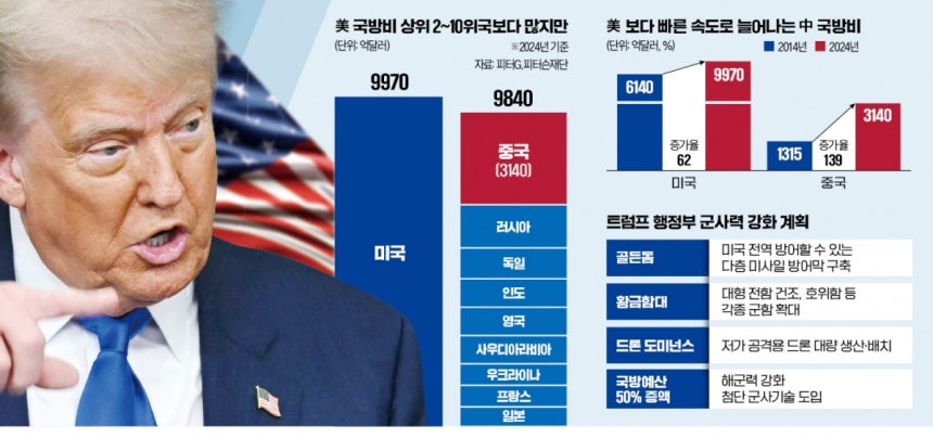 트럼프 "美 내년 국방비 2000조원"美 안보 드라이브…국방예산 50% 증액 추진