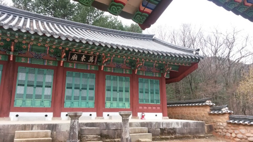 처음 건립된 장소는 화양동 밖의 만경대였는데 그후 권상하가 주도하여 화양동 안 만동묘 옆으로 이전했다.옮긴 곳은 만동묘 오른쪽 전면으로 마치 만동묘를 위요(圍繞)하며 보호하듯 ㄱ자 형태로 북향하는 건물을 배치하였다.