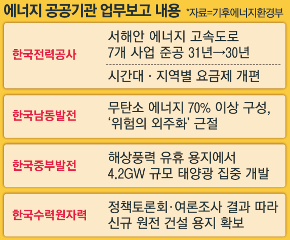 한국전력공사는 25개 건설사업 중 7개 사업을 기존 발표 내용보다 1년 이른 2030년까지 준공한다는 계획을 밝혔다.이를 위해 국민성장펀드를 활용하거나 국민펀드를 조성하는 방안을 검토하고 정부와 협의할 예정이라고 부연했다.