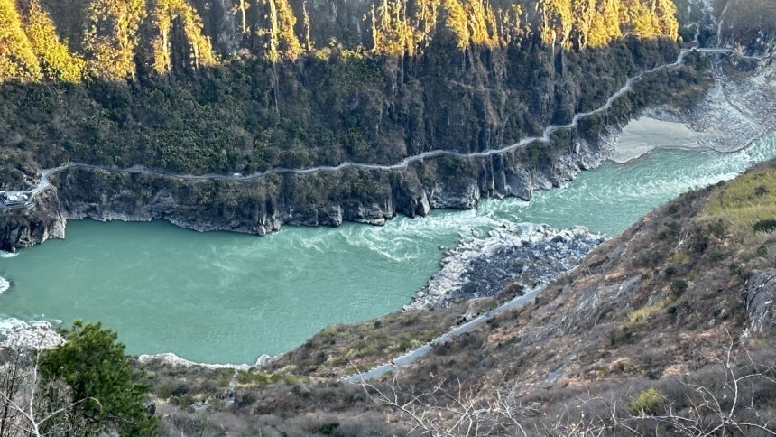 차마고도는 세계에서 가장 높은 곳에 있는 험준하고 열악한 옛길로,사람과 말이 겨우 다닐 수 있는 좁은 길이었다.높은 산 깊은 계곡 빠르게 흐르는 급류를 지나야 했기 때문에 위험하기 이를 데 없었다.그중 우리는 리장 북쪽 진사강을 따라 나 있는 호도협의 차마고도를 걸었다.강물에 가까운 저지대로는 찻길이 나 있지만,중간지대로는 차마고도 옛길이 그대로 유지되고 있기 때문이다.사람과 말이 걸어서만 갈 수 있는 28굽이길을 지나 상호도협에서 중호도협까지 10km 정도를 트레킹했다.