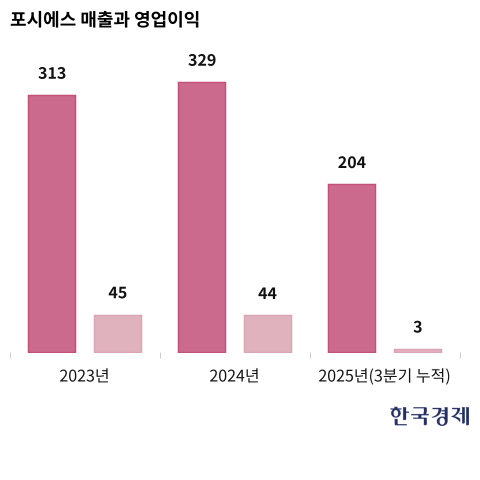 이재명 정부가 내년 1월부터 코스닥 상장폐지 요건 중 시가총액 기준을 현행 40억원에서 150억원으로 3배 이상 상향하는 만큼 포시에스도 사정권에 있다.2029년엔 시가총액이 300억원을 넘어야 하는데 현재 556억원이다.기업가치를 높이기 위한 카드를 지금부터 하나하나 펼쳐야 하는 셈이다.