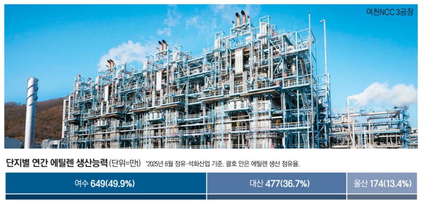 지역별로 보면 여수 화학단지는 여천NCC가 제3공장을 셧다운할 경우 에틸렌 생산량을 47만t 감축할 수 있는 여력을 보유하고 있다.여기에 롯데케미칼도 대산 석유화학단지에 이어 추가적인 에틸렌 생산 감축 방안을 검토 중인 것으로 알려졌다.