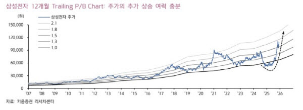 박 연구원은 “삼성전자의 주가는 범용 D램의 공급 가격이 시장 기대치를 넘어서고 2026년 ASIC과 엔비디아향 HBM의 출하량 전망치가 상향 조정되면서 최근의 상승세를 이어갈 것”이라고 판단했다.
