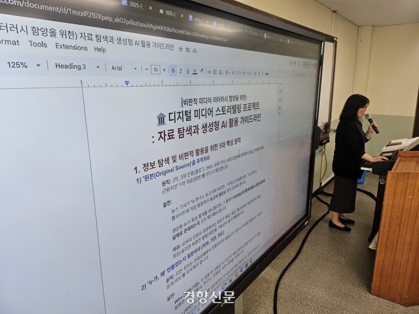 지난해 11월 박숙자 서강대 교수가 인문사회 글쓰기 수업을 진행하고 있다.김송이 기자면(관점들): “AI는‘질문하는 법’은 가르쳐주지 않는다”