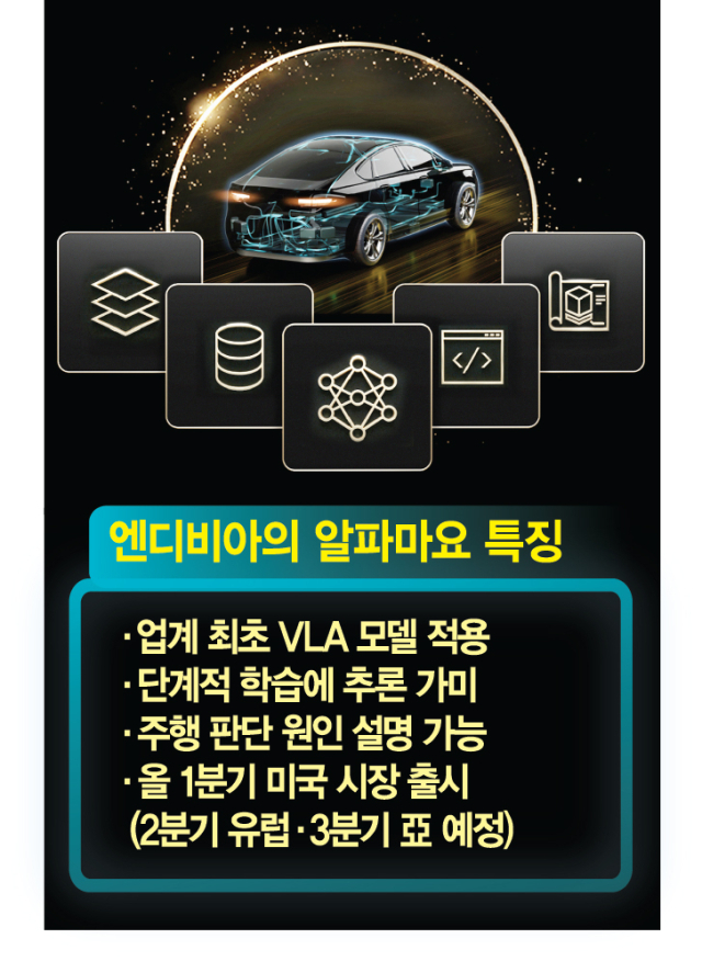 황 CEO는 “피지컬 AI의 챗GPT 시대가 도래했다”고 자평했다.학습에서 추론으로 진화한 생성형 AI처럼 알파마요의 등장을 계기로 AI와 물리적 세계를 결합한 피지컬 AI도 추론의 시대로 넘어갔다는 의미다.그는 이어 “알파마요를 탑재한 메르세데스벤츠 CLA가 올 1분기에 미국에서 먼저 출시되고 2∼3분기에는 유럽과 아시아 시장으로 이어질 것”이라고 예고했다.