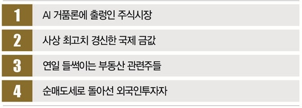 여기에 시멘트·페인트 등 건설 관련주도 급등했다.고속버스터미널과 서초구 방배동 등 서울 강남권 재건축 사업 기대감이 주가를 끌어올렸다.AI 거품론으로 반도체가 부진한 틈을 타 '테마주'의 영향력이 강해지고 있다는 얘기다.