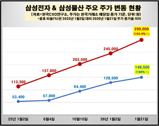 삼성물산 주식 역시 같은 기간 15만7천800원에서 29만9천원으로 오르며,오늘 스포츠 경기보유 주식 가치는 5조3천462억원에서 10조6천709억원으로 높아졌다.