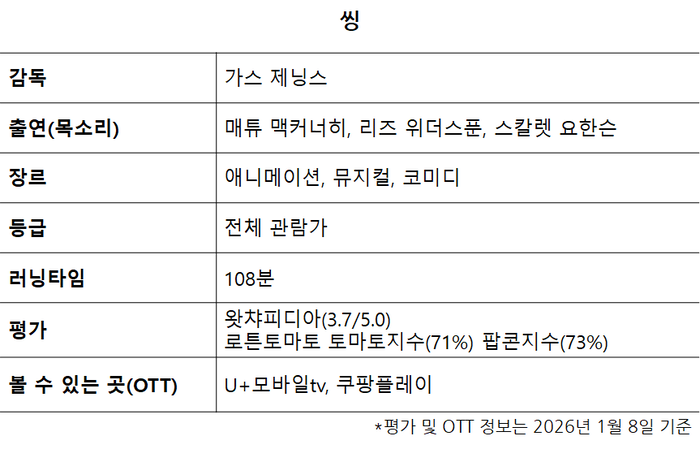 영화‘씽’포스터 [유니버설픽처스]‘매경 뒤 시네마’는 OTT에서 감상 가능한 영화 속 경제 이야기를 살펴보는 코너입니다.아래 기자 페이지 구독 버튼을 누르면 더 많은 리뷰를 볼 수 있습니다.