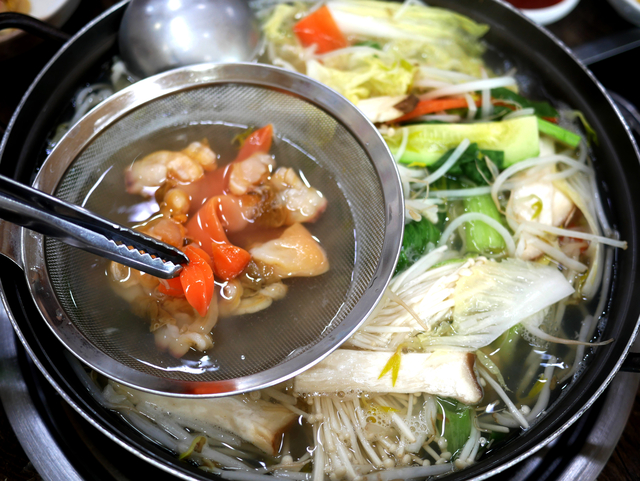 ◇금소리= 밥에 곁들이는 미소시루(된장국)를 제외하고 일본에서 국물 요리를 따로 챙겨 먹는다면 샤부샤부가 가장 흔하다.갈매기 주둥이를 닮았대서 갈미조개라 부르는 개량조개를 샤부샤부로 즐길 수 있는 집이 부산 명지 쪽에 있다.제법 커다란 조개 안에 발간 살이 들었는데 이게 요즘 별미다.조갯살의 탄력과 그 달곰한 맛과 향은 비싼 새조개 못지않다.부산 강서구 르노삼성대로 602 명지선창회타운 내.