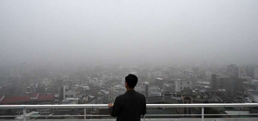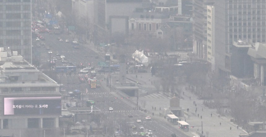 이유는 심각한 수준의 미세먼지.주말을 앞둔 16일 강원 영동을 제외한 전국 미세먼지 농도는‘나쁨’수준으로 높게 나타났다.한때‘매우 나쁨’수준으로 미세먼지가 짙은 지역도 발생했다.전날 국외에서 유입된 미세먼지 등이 대기 정체로 빠져나가지 못한 영향이다.