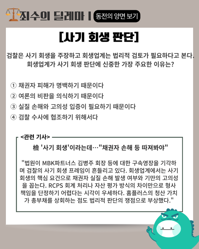 ▶기사 바로가기: 檢‘사기 회생’이라는데…“채권자 손해 등 따져봐야”