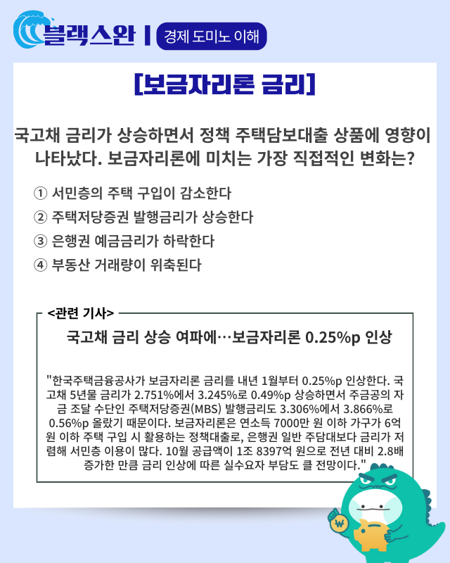 ▶기사 바로가기: 국고채 금리 상승 여파에…보금자리론 0.25%p 인상