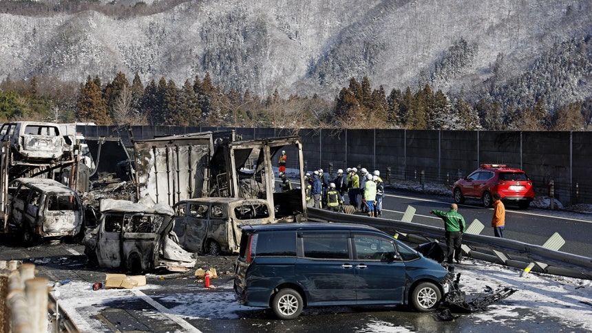 일본 고속도로에서 차량 67대가 연쇄적으로 추돌해 2명이 숨지고 26명이 다치는 사고가 발생했습니다.