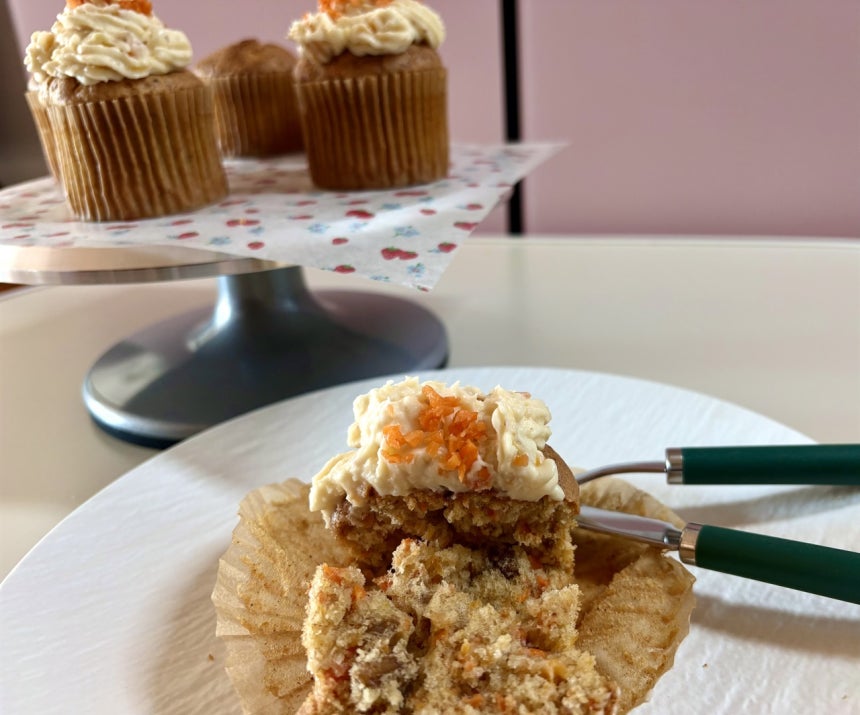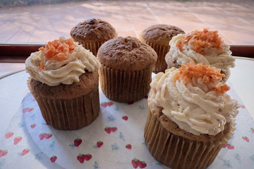 당근 컵케이크의 가장 큰 장점은 밀가루 만큼이나 많은 당근이 들어가지만,당근 맛이 거의 나지 않는다는 점이다.채소를 잘 먹지 않는 아이들이나 밀가루 섭취가 부담스러운 사람에게는,그나마 죄책감을 덜어주는 '길티 플레저'가 될 수 있다.위에 프로스팅(크림)을 올리지 않는다면 당근 자체의 단맛만으로도 꽤 달콤해 아침 식사 대용으로도 손색 없다.