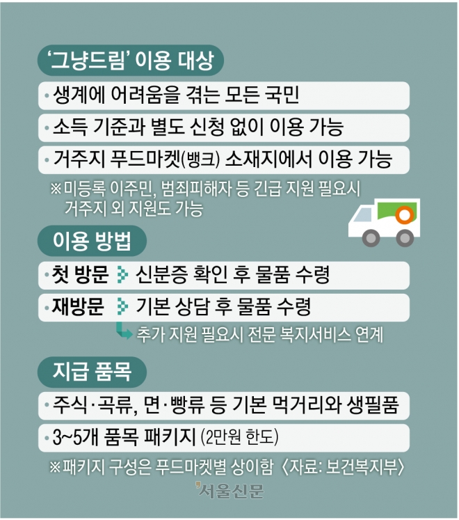 먹거리 무료 지원 시범 운영‘복지부 그냥드림’ <상>별도 절차 없이 사각지대 주민 지원