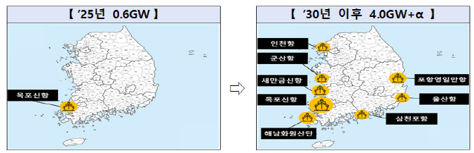 정부는 이를 위해 현재 목포신항 한 곳뿐인 해상풍력 지원 항만을 8곳(잠정)으로 늘리고 15㎿급 해상풍력 설치 전용선박(WTIV)을 4척 이상 확보하는 등 2030년까지 연 4GW의 해상풍력 설치 인프라를 구축한다.
