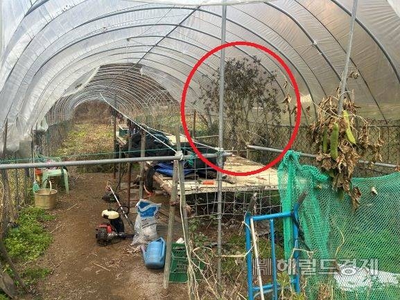 비닐하우스는 두 지자체의 경계 부근 산속에 위치하고 있다.시내에서 약 1시간 20분 정도 걸리는 깊은 곳이다.밖에서 언뜻 보면 일반 농작물과 쉽게 구분하기 어렵게 꾸며놨다.