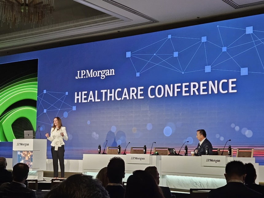 킴벌리 파월 엔비디아 헬스케어 부문 부사장이 12일(현지시간) 미국 샌프란시스코에서 열린 JP모건 헬스케어 콘퍼런스에서 그랜드볼룸 발표를 하고 있다.[엔비디아 제공]