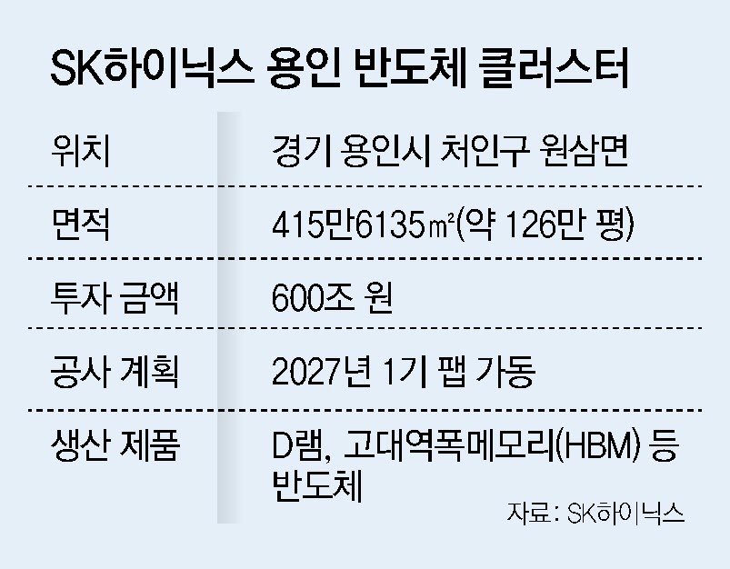 SK하이닉스는 당초 용인 반도체 클러스터 조성에 약 120조 원을 투자하겠다고 밝혔다.하지만 글로벌 시장에서 반도체 기술 패권을 쥐겠다는 최태원 SK그룹 회장의 의지가 반영되면서 투자 규모가 약 600조 원으로 늘었다.SK하이닉스 관계자는 “용인 반도체 클러스터를 단순한 산업단지가 아니라 한국 반도체 경쟁력을 높이고 소부장 산업의 상생과 혁신을 이끄는 핵심 허브로 키울 것”이라고 말했다.