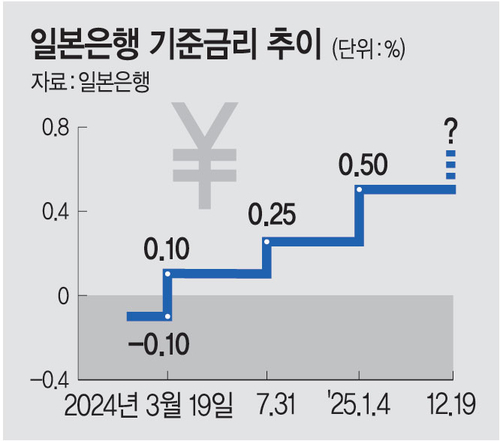 19일 오전 일본은행(BOJ)이 금융정책회의를 열고 기준금리를 현 0.5%에서 0.75%로 인상할 것으로 확실시돼 글로벌 금융시장 전체가 바짝 긴장하고 있다.싼 이자로 엔화를 빌려 전 세계에 투자하는‘엔 캐리 트레이드’가 한꺼번에 청산될 경우 자본시장에 미칠 파급력이 클 것이기 때문이다.다만 이번에는 인상이 충분히 예고됐고 대미 투자 압박과 부양책 등의 요인이 있어 크게 우려할 만한 수준은 아닐 것이라는 분석이 우세하다.한국에는 자본시장에서 외국인 자금 유출 규모뿐 아니라 환율 시장에서 엔화와 동조하며 약해진 원화의 환율 안정에 미칠 영향에도 관심이 쏠린다.