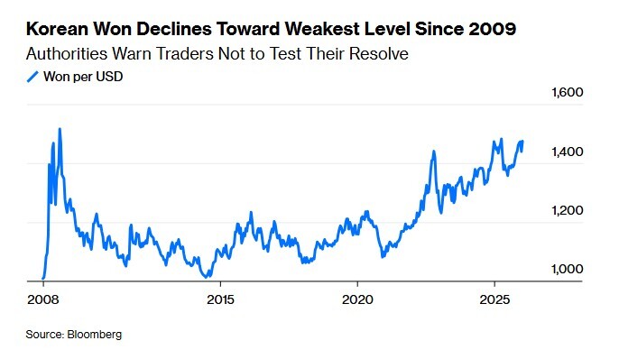 달러 약세 국면에서도 원·달러 환율이 1470원대에서 고공행진 중인 현상에 대해 외신들도 주목하고 있다.우리 정부가 환율과 씨름하는 가운데 올 하반기부터 24시간 원화 거래 허용 등 금융시장 개편까지 예정돼 있어 한국 시장이 더 큰 변동성을 감내해야 할 수 있다는 경고도 나왔다.