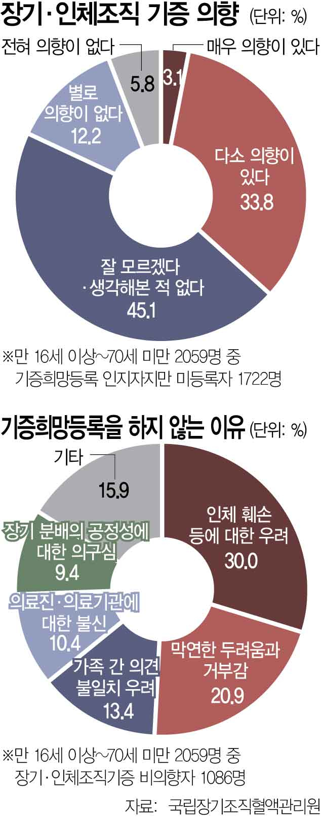 전문가들은 장기기증 참여가 저조한 원인을 결정을 미루는 행동에서 찾고 있다.실제 장기기증 희망 등록을 하지 않은 응답자들 중 상당수는 장기기증 자체를 부정하기보다는 “깊이 생각해본 적이 없다”고 답했다.인식은 있지만 충분한 정보와 설명을 접할 기회가 없었다는 의미다.서울의 한 대형병원 장기이식 코디네이터는 “국민 다수가 장기기증의 필요성에는 공감하지만 막상 본인과 가족의 문제로 다가오면 결정을 미루는 경우가 많다”며 “장기기증을 도덕적 선택의 문제로만 접근하기보다 제도와 절차에 대한 신뢰를 높이고 반복적으로 교육하고 노출시키는 사회적인 합의가 필요하다”고 말했다.