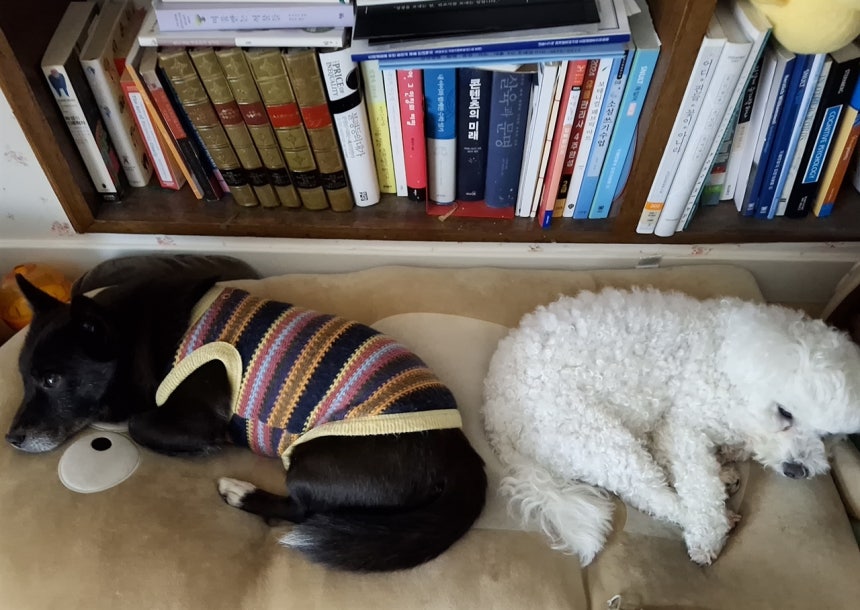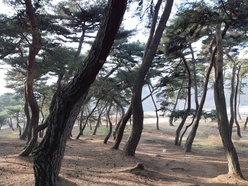 삶은 사는 게 아니라 살아지는 것이라는 생각이 들 때가 있잖아요.3년 전 겨울,공주 곰나루에 바람을 쐬러 간 적이 있었는데,저만치 앞에서 솔밭을 유유히 걸어가는 둥이가 문득 '벗'이라고 느껴지더라고요.'아,강아지도 같이 늙어가는 친구가 될 수 있구나.그것도 한 지붕 아래서.' 어쩌면 멀리 있는 자식보다 나을 수도 있겠다는 생각까지 들더라고요.