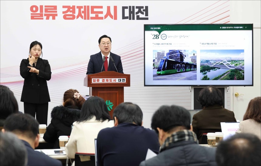 특히 2026년은 ▲대전충남특별시 출범으로 독자적인 재정과 권한을 가진 지방 정부 시대를 위한 특별법 관철 ▲방산혁신클러스터 및 로봇드론지원센터 완료 ▲대전 D-도약 펀드 운영 ▲소상공인 경영안정지원금 및 초저금리 경영자금 지원 ▲전통시장 시설 개선 ▲국공립어린이집 확충 및 대전형 양육기본수당 등 양육지원 ▲청년 만남 및 결혼장려금 지원 등 ▲첫 대전시청사 복원 ▲0시 축제,경제 활성화형 대표 축제 육성 ▲동구 생활체육시설 조성 ▲3대 하천 준설 우기 전 완료 ▲제2매립장 조성 ▲타슈 확대 ▲유성복합터미널~외삼 BRT 연결도로 신설 ▲신교통수단 3칸 굴절차량 도입 ▲노후계획도시 정비 기본계획 수립 등을 중점 추진하겠다고 밝혔다.