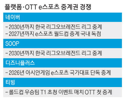 국내 LoL 프로 리그인 LCK의 경우 이달 네이버와 SOOP(옛 아프리카TV)이 LoL 개발사인 라이엇게임즈과 5년간 장기 파트너십을 맺고 내년부터 2030년까지의 중계권을 확보했다.