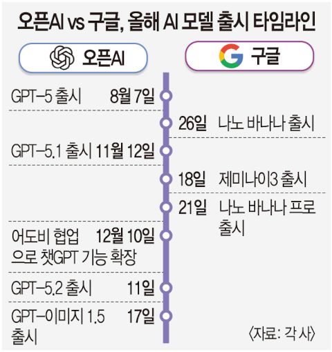 오픈AI의 이미지 기능 개선은 구글의 공세를 의식한 조치라는 평가가 지배적이다.구글은 지난달 20일 세부 편집 기능을 강화한 이미지 도구‘나노바나나 프로’를 선보였다.탁월한 성능에 “포토샵을 사용할 필요가 없어졌다”는 호평이 쏟아졌다.이에 오픈AI는 지난 10일 포토샵 운영사 어도비와 손을 잡고 어도비 대표 소프트웨어 3종을 챗GPT 대화창에서 구동할 수 있는 기능을 출시하기도 했다.
