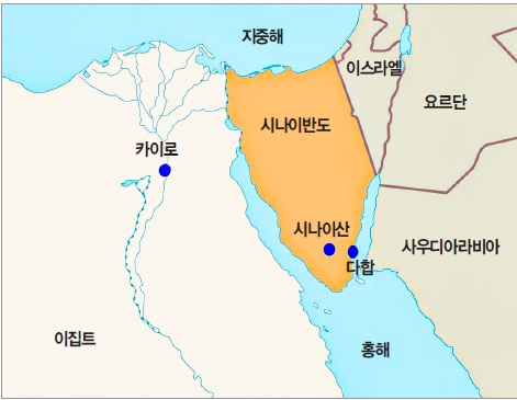 위치 이집트 시나이반도 남부,다합Dahab에서 차량으로 약 2시간